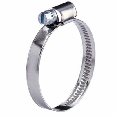 Parte inferior da abraçadeira lisa: A superfície interior lisa da abraçadeira minimiza o aperto, o corte ou a extrusão do material da mangueira à medida que a abraçadeira é apertada.