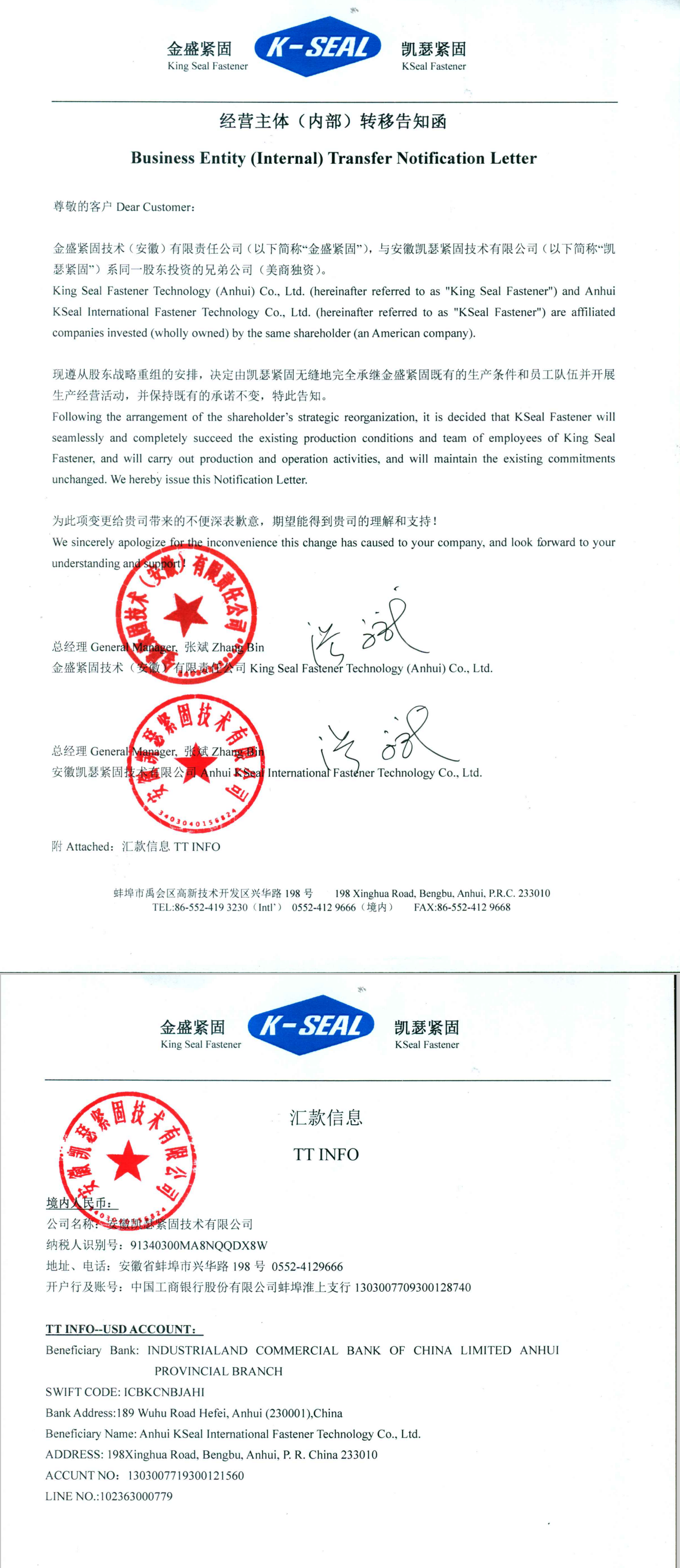 2025 Copyright KSeal International Fastener Technology Co., Ltd./King Seal Fastener Technology (Anhui) Co., Ltd. All Rights Reserved.